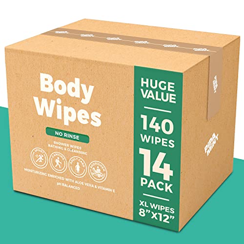 Body Wipes – (14 Pack) – 140 XL Bath Wipes for Adults No Rinse, Adult Wipe for Elderly – Body & Face Gentle Skin Cleansing, Shower Wipe Bathing for Travel, Elderly, Car, Gym, Camping (8×12 Inch)