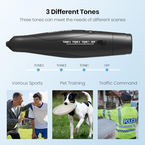 Specification: WANJOTEC Electronic Whistle Set of 3, 3 Adjustable Tones, Maximum Volume 130dB Handheld Emergency Whistle for Referees, Sports, Outdoor Sports Whistle with Lanyard